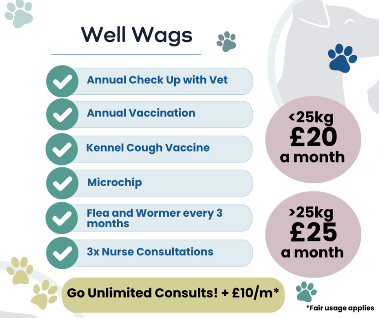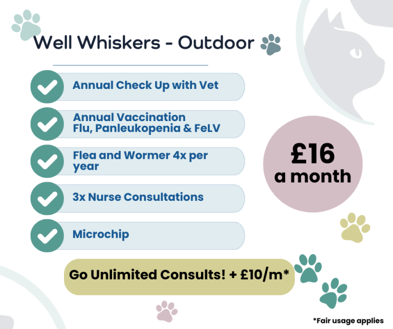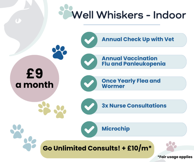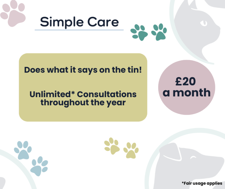We’re thrilled to introduce our Pet Health Plans, designed to give you flexible options that truly fit your pet’s needs. With our pet health plans, you get peace of mind knowing your pet’s essential care is covered. For any of our plans you can choose to "Go Unlimited" and for only £10 per month, you get unlimited consultations included with the plan of your choice. Have a look at our options and build the plan that works best for you.